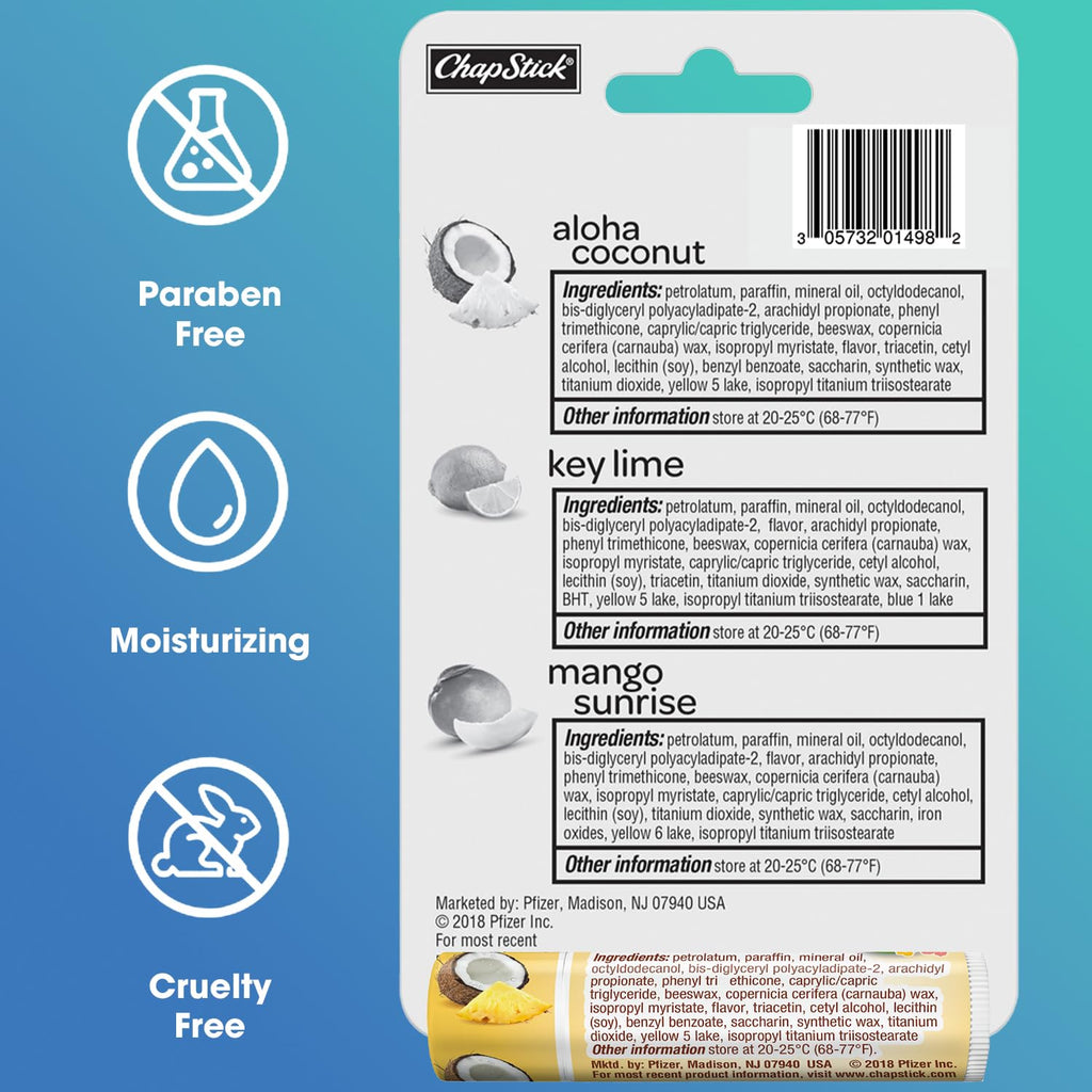 ChapStick Lip Care Bundle – Tropical Paradise Collection with Mango Sunrise, Key Lime, and Aloha Coconut Lip Balm, 0.15 Oz Ea (5 Piece Set)