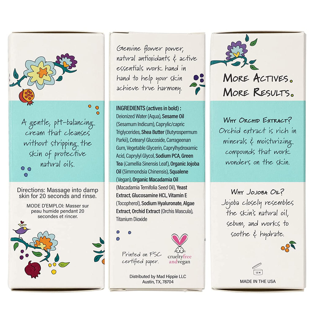 Mad Hippie Cream Cleanser - Hydrating Facial Cleanser with Jojoba Oil, Green Tea, Orchid Extract, and Hyaluronic Acid, Gentle Face Cleanser for Dry, Sensitive Skin, 4 Fl Oz