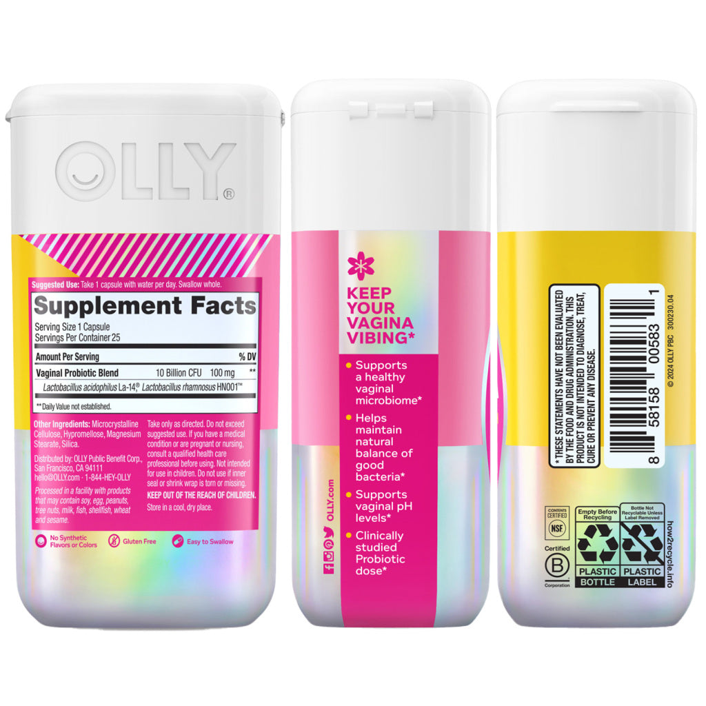 species found in the vaginal tract. Happy Hoo-Ha is formulated with Lactobacillus acidophilus La-14 and Lactobacillus rhamnosus HN001 for vaginal health.* At OLLY, wellness is at the center of everything we do. That's why we've made it our personal mission to make nutrition easy to understand, so you can pursue good health without compromise. *These statements have not been evaluated by the Food and Drug Administration. This product is not intended to diagnose, treat, cure, or prevent any disease.